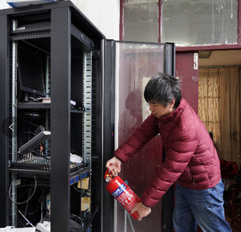 上午10点,曲德强宣布消防疏散逃生演练开始。参加演练的师生分散于学院实验室和各办公室。火警警报响起,相关老师立即拨打电话报告学校保卫处,并模拟拨打119火警电话。师生们在引导下通过楼道常闭防火门有序疏散。5分钟后,人员疏散完毕,参演师生集合于楼外空地处并清点人数。保卫处微型消防站人员及时到位,模拟扑灭火灾。