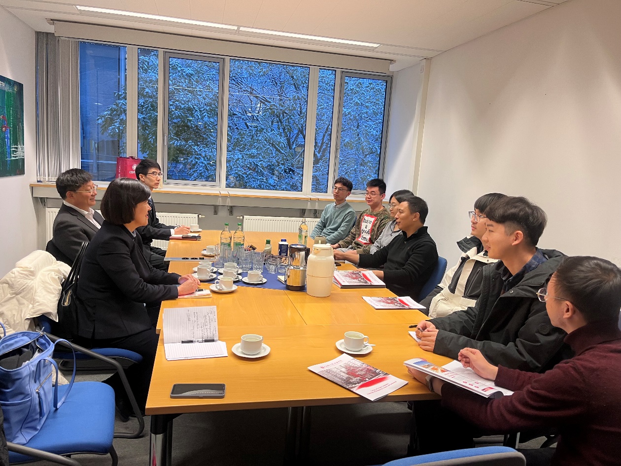 11月30日下午,我校代表团走访了德国顶级名校慕尼黑工业大学(Technical University of Munich),该校热力学所文东升教授团队接待并陪同了代表团。文教授介绍了德国工科大学的现状以及慕尼黑工业大学热力学所的办学历程、前沿研究和与国内外高校合作交流的相关情况。张华副校长和代表团成员就潜在的合作热点与文教授进行了探讨,并在其陪同下参观了热力学所各大实验室和科研设备,并就德国工科大学所面临的转型问题和德国的双轨制教育进行了调研。