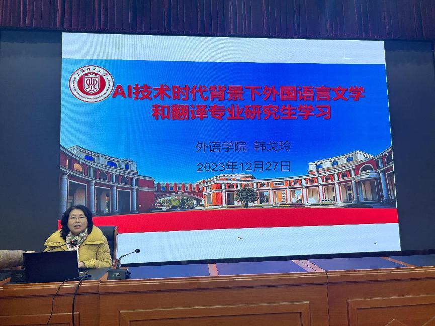 12月27日晚上,在国合楼5楼报告厅韩戈玲副院长为我院2023级研究生召开题为“AI技术时代背景下外国语言文学和翻译专业研究生学习”的学风教育大会。大会主要围绕研究生如何培养学术道德、丰富学科知识、增强学术研究能力、学术交流能力及人际沟通能力这几个方面。