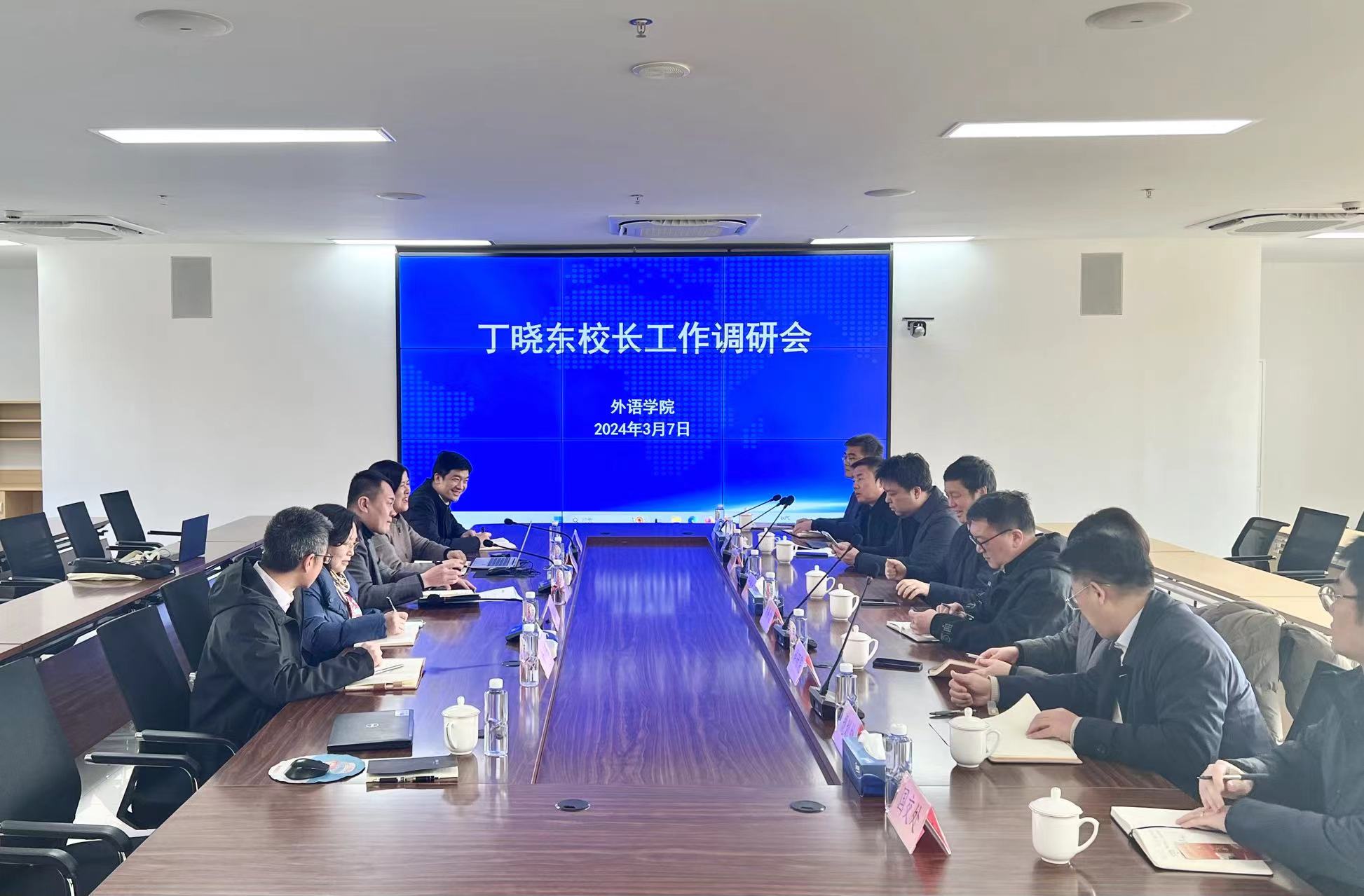 丁晓东肯定了学院近年来取得的成绩。他指出,要充分结合新时代国家发展的要求,聚焦学院办学特色,明确学科专业改革方向,优化师资队伍结构,结合人工智能的发展,探索外语类AI辅助课程建设、加强科技外语教材编撰、提升学生学科竞赛能力,不断探索外语学科发展的新机遇。