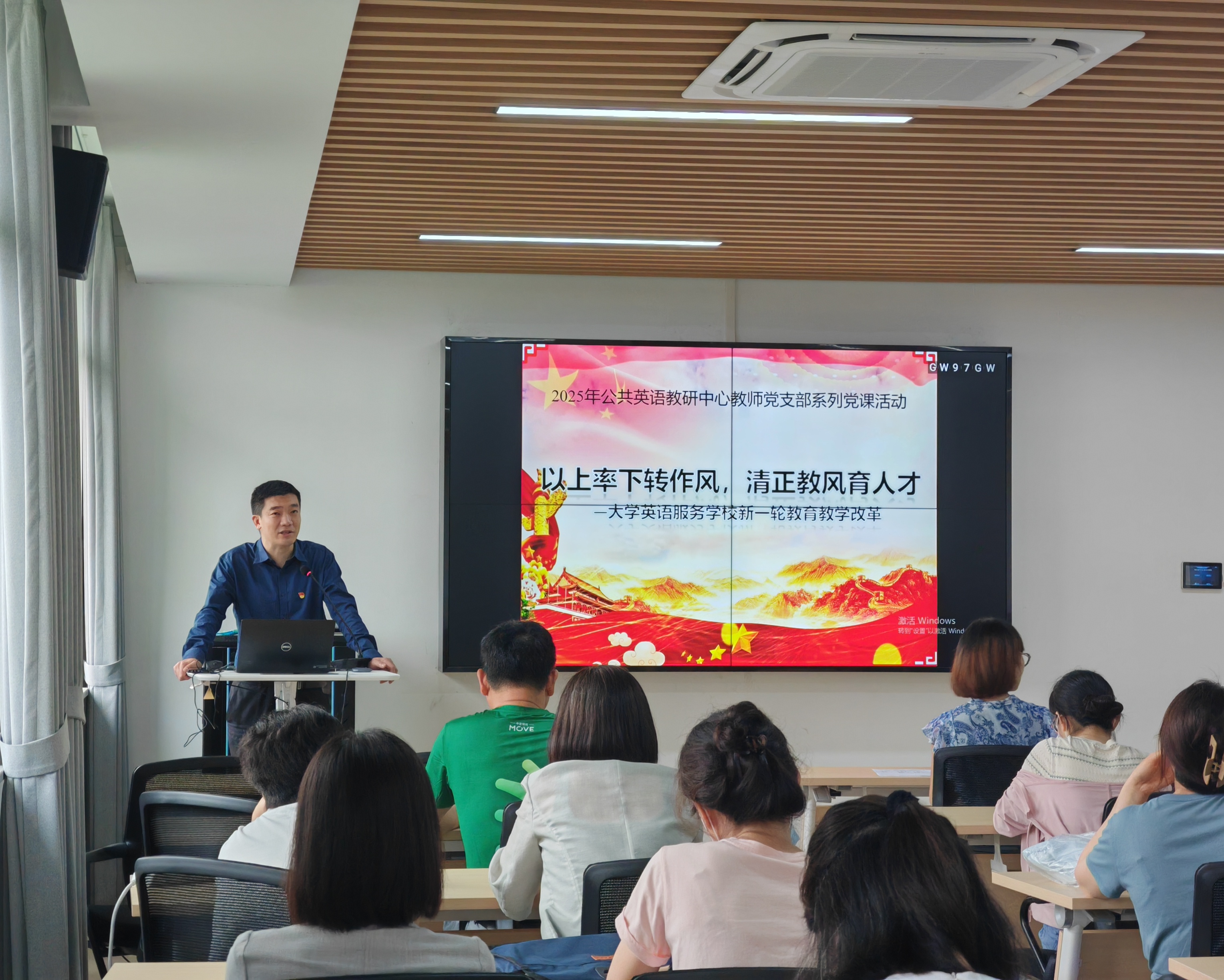 6月13日,公共英语教研中心党支部在外语楼502召开全体党员大会。大会由学院党委委员、威廉希尔williamhill副院长张乐为全体支部党员讲授了主题为"以上率下转作风,清正教风育人才"的专题党课。