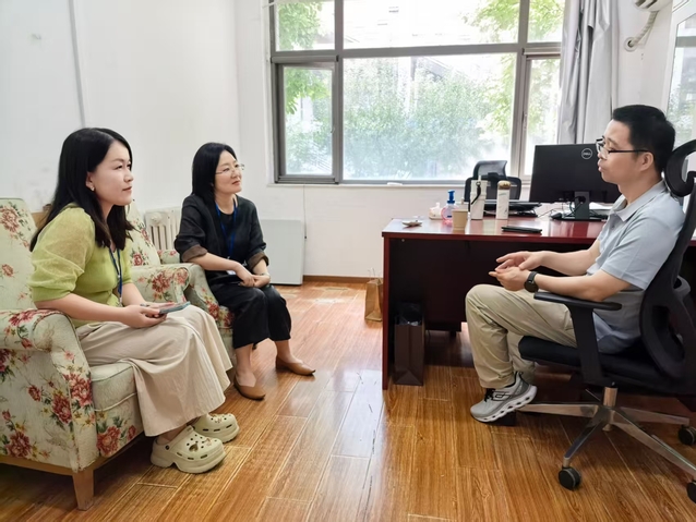 在9月12日的调研环节,三位教师访问了北京外国语大学高级翻译学院,与王华树教授就AI与智能翻译技术、语言数据挖掘与分析、python与语言数据处理等课程的结合问题进行了深入探讨。教师们分享了本专业在AI课程建设的进展与当前面临的挑战。王华树教授强调课程设计应紧密贴合实际需求,建议将Python编程思想融入翻译教学,利用程序化思维解决翻译中的复杂问题,从而提高学习效果与学生参与度。他指出:“人工智能技术能够赋能翻译教学,提高翻译效率和质量。教师应主动掌握相关技术,将其融入教学设计中,同时关注技术更新和课程内容的适应性。课程内容应与学生的专业方向和未来职业发展相结合,注重实际应用性和前瞻性。课程建设是一个持续完善的过程,从初步摸索到建立知识框架,再到内容的不断丰富与拓展。”
