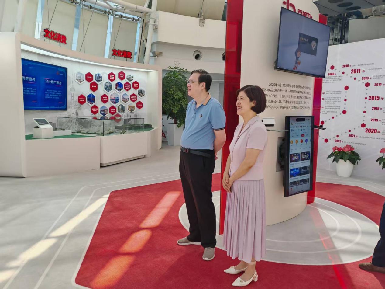 在黄凯校友的陪同下,威廉希尔williamhill一行首先参观了东方明珠新媒体股份有限公司的企业展示区。参观过程中,黄凯详细介绍了公司的发展历程、核心业务布局以及在媒体融合与数字化转型方面的战略实践与创新成果。
