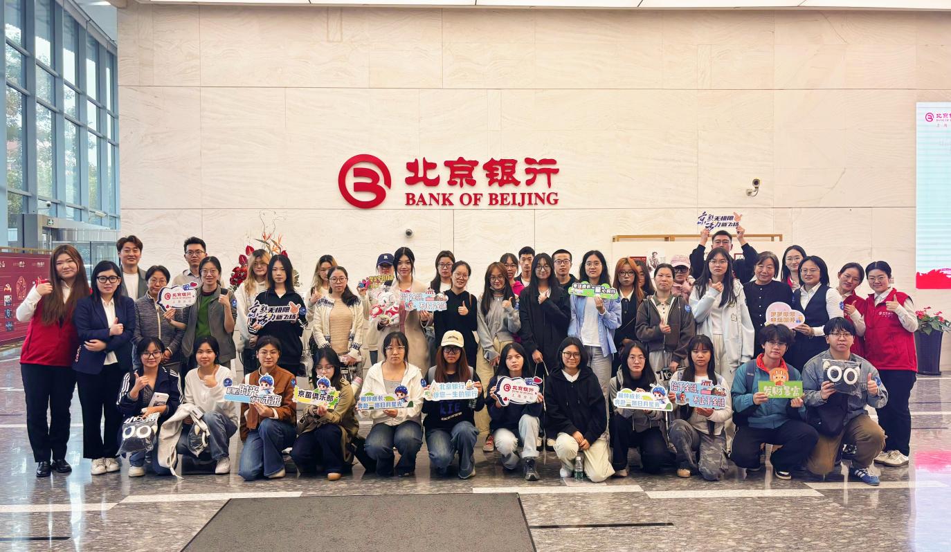 本次参访活动得到新通教育集团上海分公司和北京银行上海分行各部门的大力支持。在银行工作人员的带领下,同学们进入营业部、一楼企业文化墙、私人银行中心进行参观。讲解人员向学生详细介绍各功能区域的定位、日常业务办理流程、特色服务模式等内容,让同学们直观感受银行的业务场景与服务标准。