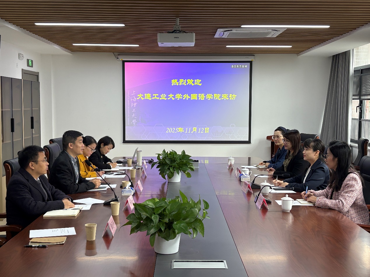 首先,张乐代表学院对大连工业大学外国语学院领导的来访表示欢迎,并详细介绍了学院的历史沿革、专业建设、教学改革和人才培养等情况。于晓玲介绍了大连工业大学外国语学院的整体概况、专业建设、学科交叉和“十五五”规划等方面的情况。她希望通过此次调研,在英语、日语专业建设和大学英语教学改革方面与我院进行探讨交流。